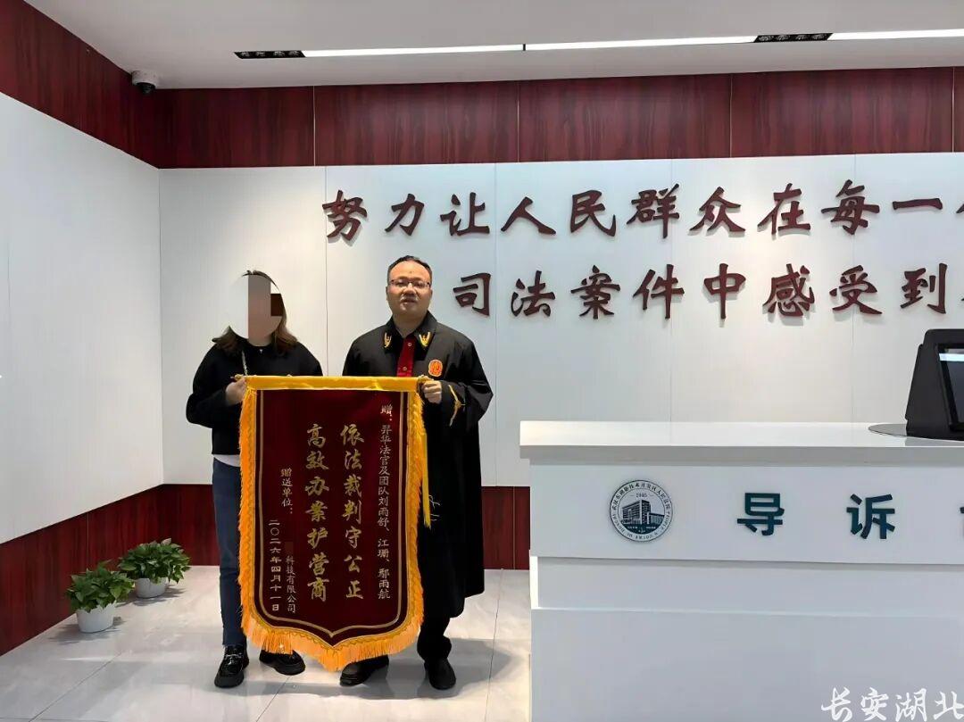 两面锦旗挂上墙的那一刻,科学城法庭副庭长羿华已经点开下一份卷宗。前后不过四天,两个素昧平生的当事人,两桩案子案由也完全不同,却不约而同送来了锦旗,写的不是感谢某一个人,而是对一种光谷速度的共同认可。