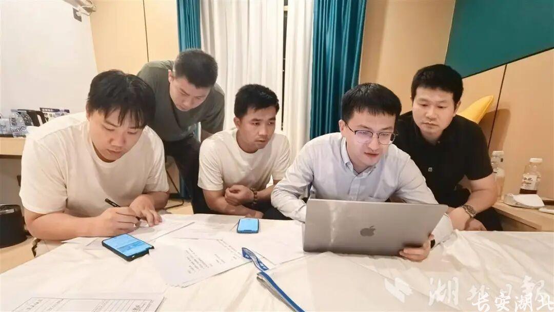 郭庭宇(右二)与同事研判网络投资诈骗案。