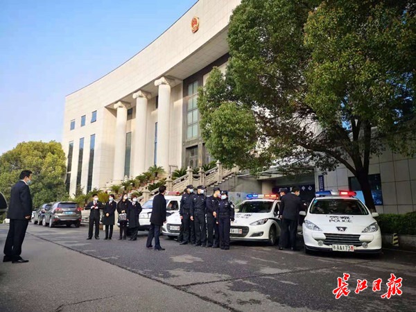 江汉区法院执行局干警集合完毕,准备出发。 记者耿珊珊 摄