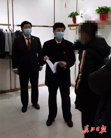 “我们今天是来执行裁定书的,对此处进行强制腾退的。”走到店门口,法官向服装店老板出示了法律文书。经过将近半个小时的沟通,服装店老板仍不想腾退。