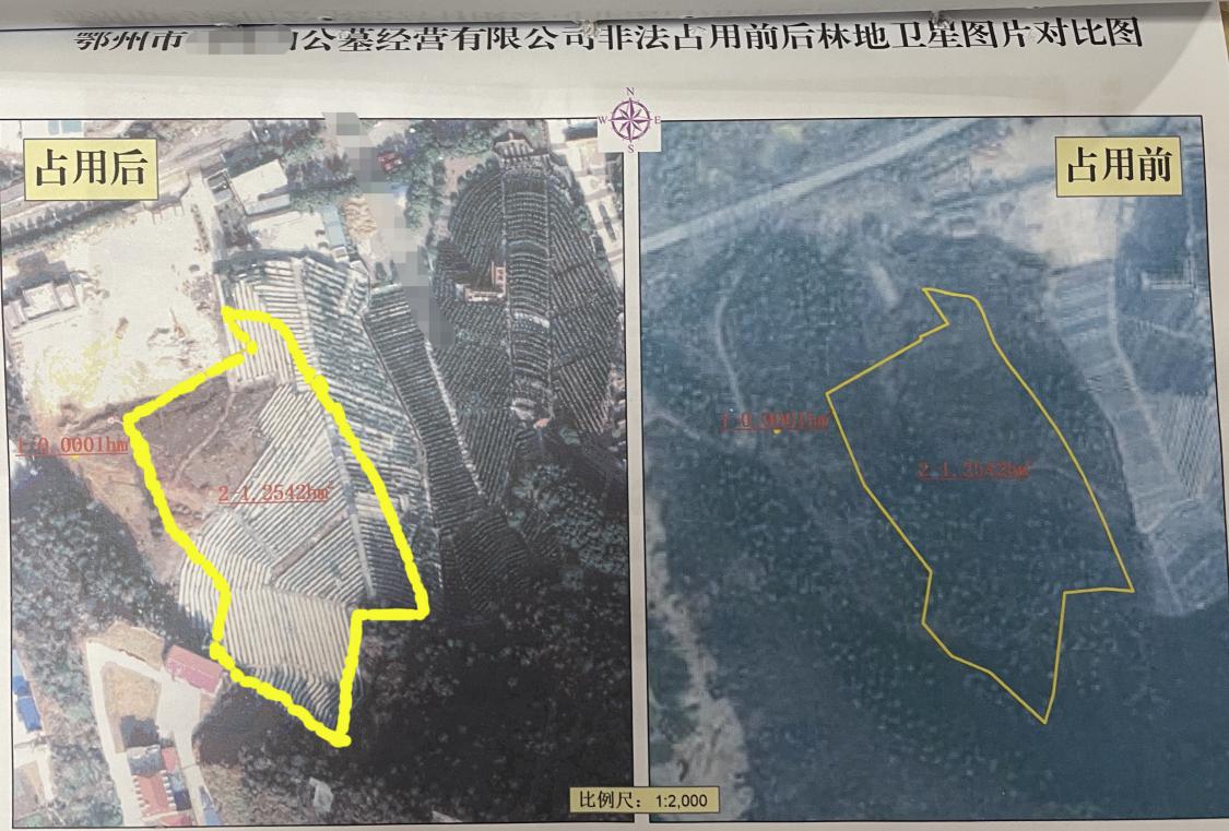 2019年,鄂州某公墓公司在公墓建设过程中,超出审核批准的范围,非法占用鄂州市某村18.8145亩林地修建公墓,造成林地大量毁坏。接群众举报,鄂州警方介入调查。同年,鄂州市鄂城区人民法院作出刑事判决,以非法占用农用地罪分别对公司和代表人判处刑罚。