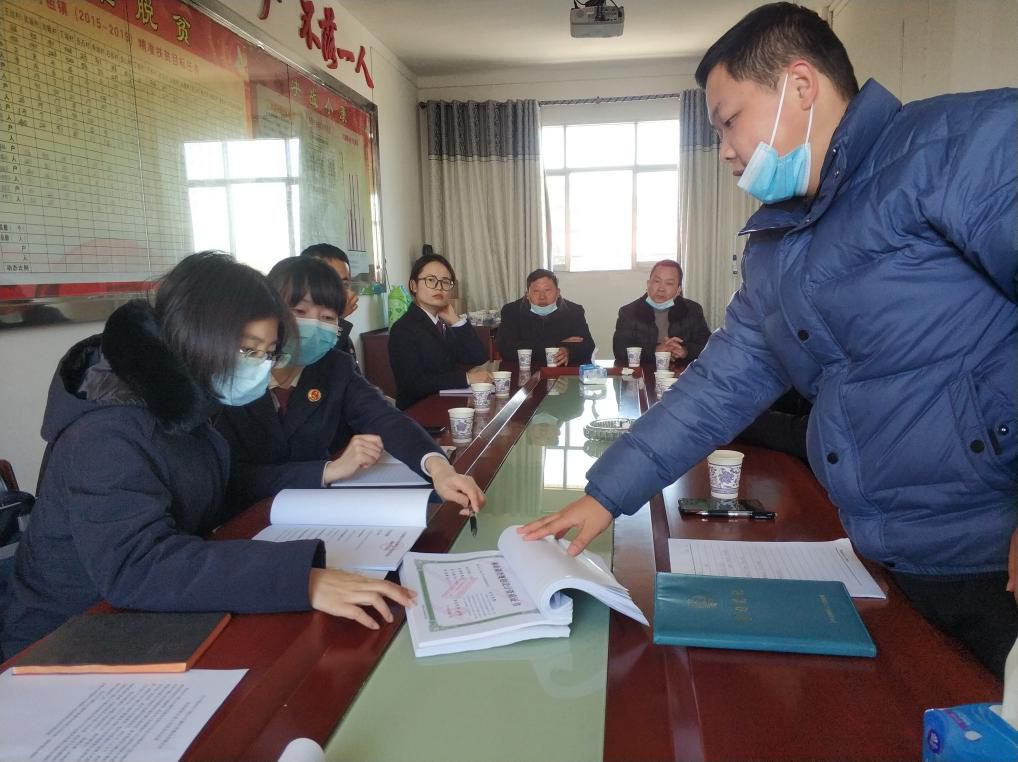 2021年1月,与当地政府协调异地造林事项,左一为市法院环境资源庭法官。武汉市中级人民法院提供图片