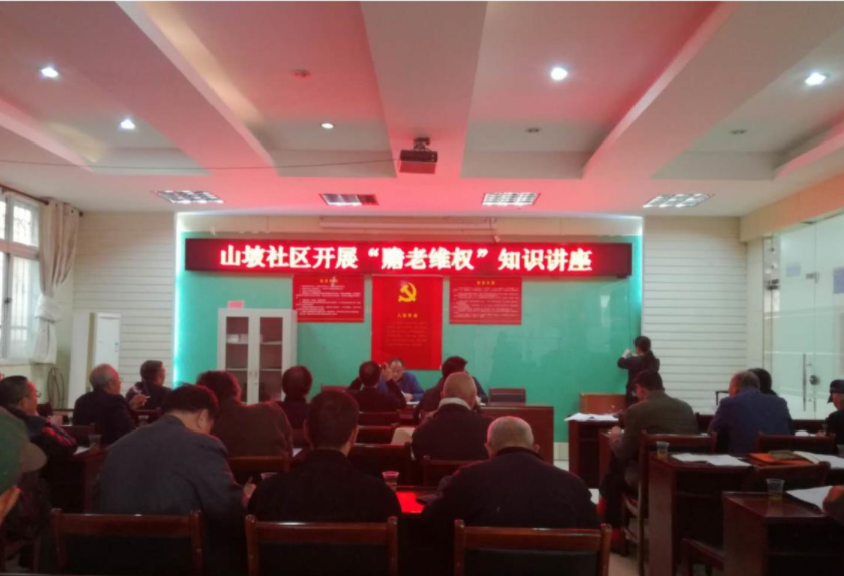 山坡司法所走进山坡社区,邀请法律顾问律师,开展《关爱老年人,维权在行动》的赡老维权法律知识讲座,社区20余名老年朋友参加。