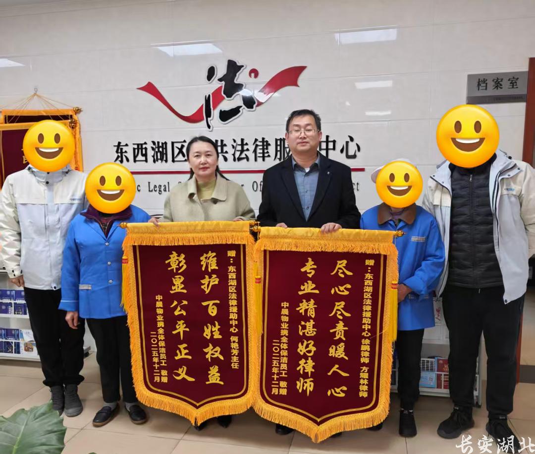 “真没想到,我们的血汗钱还能拿回来!多亏了咱们法律援助中心的律师,谢谢你们!”近日,68岁的徐婆婆和63岁的熊婆婆一同来到法援中心,将两面写有“维护百姓权益 彰显公平正义”“尽心尽职暖人心 专业精湛好律师”的锦旗送到东西湖区法律援助中心,表达她们的感谢。