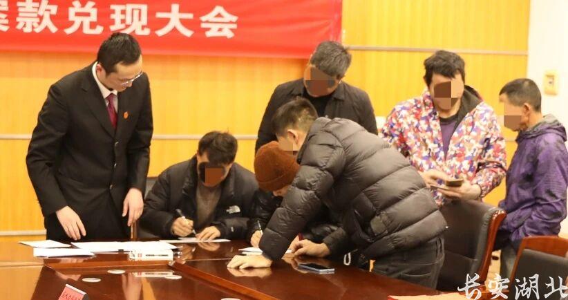 几天后,款项到账,法官立即组织集中发还。现场,法官逐一与工友们确认欠薪数额,还不忘叮嘱:“看看金额对不对,祝大家过个好年!”