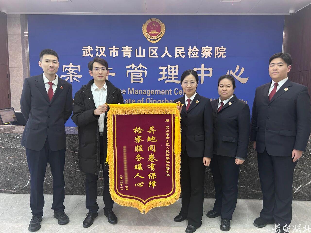 2月12日下午,一面印有“异地阅卷有保障,检察服务暖人心”的鲜红锦旗,由湖北中和信律师事务所的律师团队代表郑重送到青山区检察院案件管理中心。这面锦旗,不仅是对过去几年高效服务的真诚致谢,更成为检律关系良性互动的一道温暖缩影。