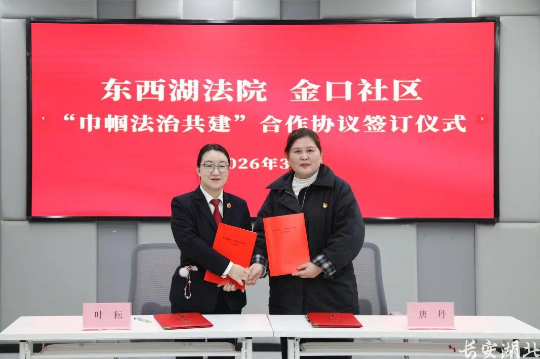 在全场的共同见证下,东西湖法院代表与金口社区居民委员会代表郑重签署了《巾帼权益保护共建合作协议》。这不仅是纸面上的约定,更是“司法+社区”联动护“她”权益的实质性举措。协议明确了双方在家事纠纷调解、法治志愿服务、普法精准配送等方面的合作框架与长效运行机制,旨在将专业的司法服务与贴心的社区关怀深度融合。
