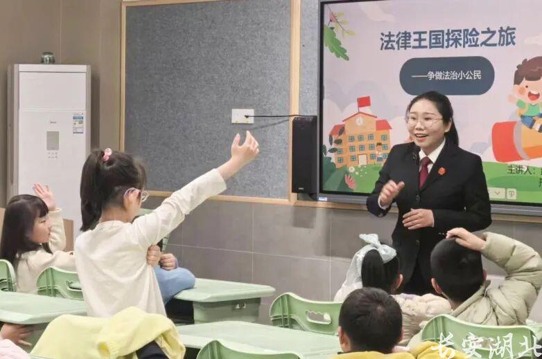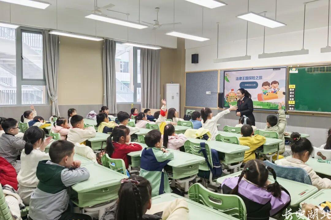 三月的春风,樱花花香满溢。武汉市育才小学一年级课堂上,40双亮晶晶的眼睛正聚焦在讲台前。江岸区法院刑庭副庭长方芳正以“法律王国探险之旅”为题,为孩子们带来一堂别开生面、活泼有趣的法治课。