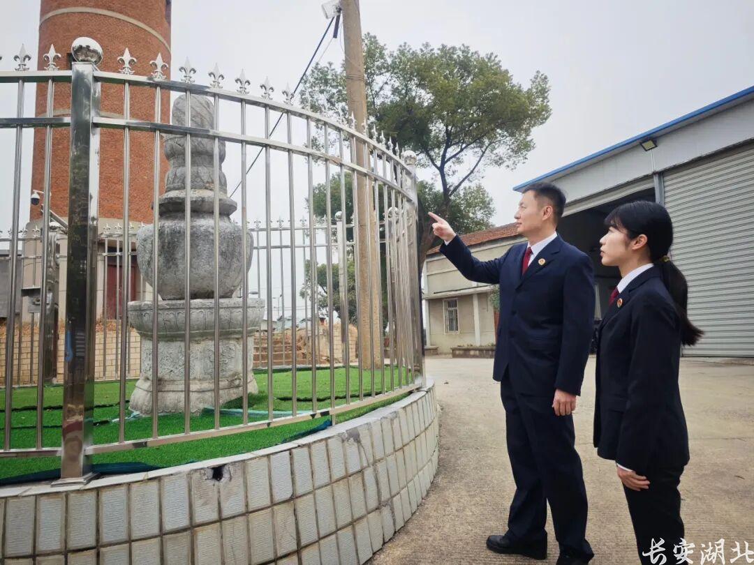 近日,武汉经开区检察院“益心守望工作室”检察官魏亮和检察官助理伍婕薇来到武汉经开区军山街黄陵水厂本无和尚塔开展公益诉讼“回头看”。