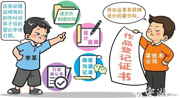 对此,李某向法庭出示了相关设计底稿、源文件创建时间、微信沟通记录及打样确认单等证据,证明其创作时间为2024年10月9日,早于被告的登记申请日期。而某技术公司未能提供证明其“独立创作”的底稿、设计思路来源或过程文件等证据。