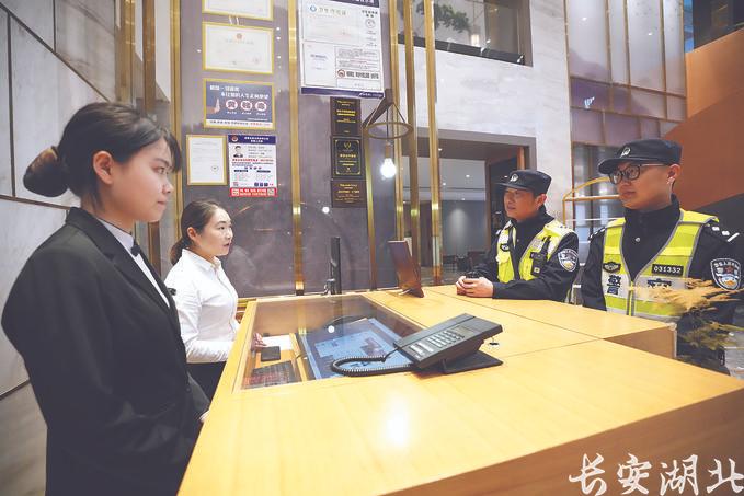 武汉市公安局武昌区分局余家头派出所民警在酒店检查安防工作