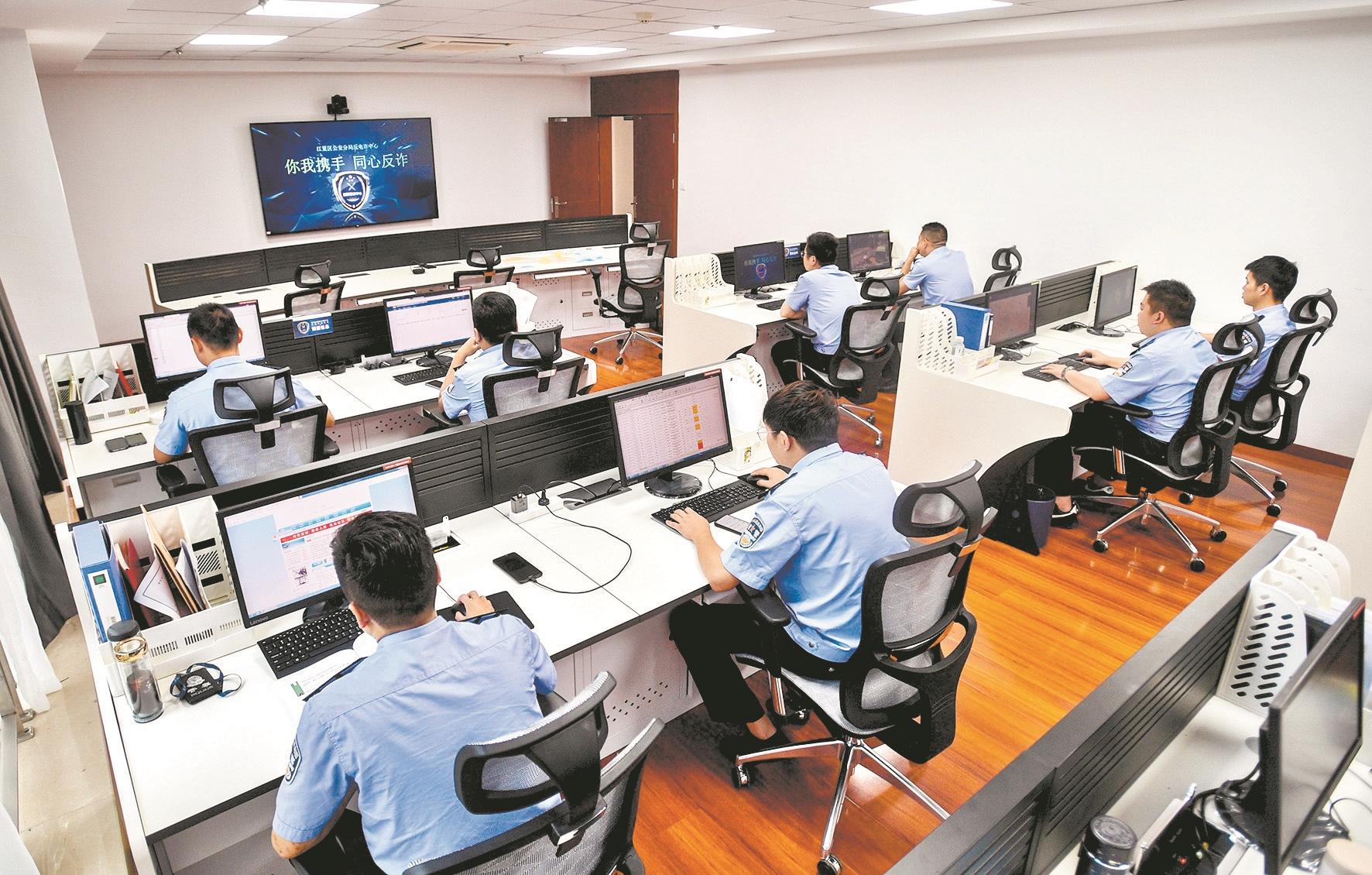 江夏反电诈中心民警在实时拦截电诈信息