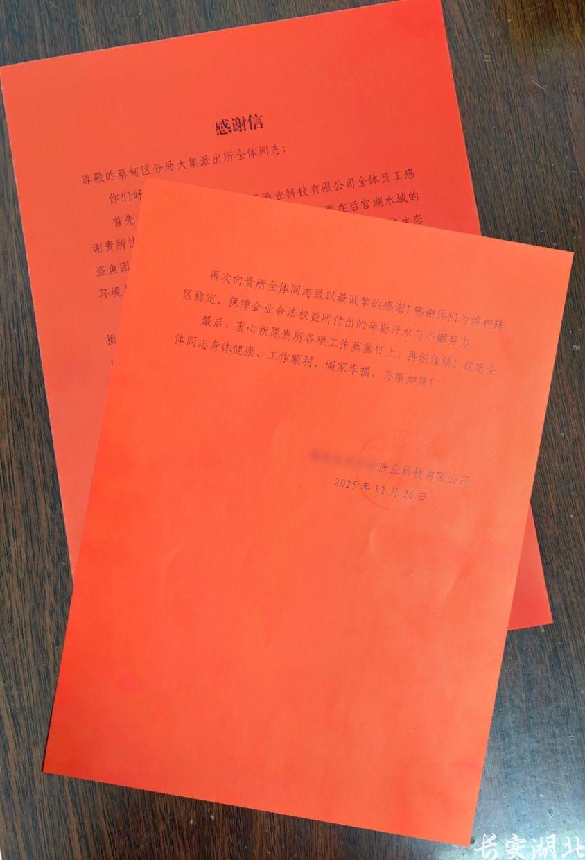12月29日,武汉市某渔业公司工作人员专程来到武汉市公安局蔡甸区分局大集街派出所,将一面印有“神速破窃案,雄风扬警威”的锦旗和一封感谢信送到办案民警李斌手中,感谢警方快速侦破鱼塘盗窃案,及时为企业挽回了经济损失。这起案件的突破,始于鱼塘边几条不起眼的泥路痕迹。