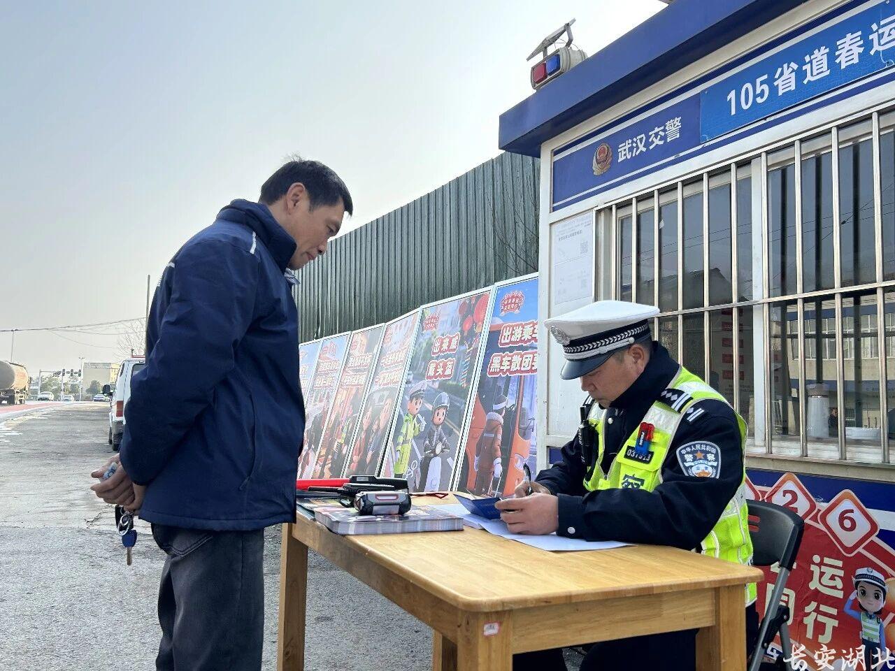 严查宣教暖相伴 蔡甸交警春运首日守护平安回家路