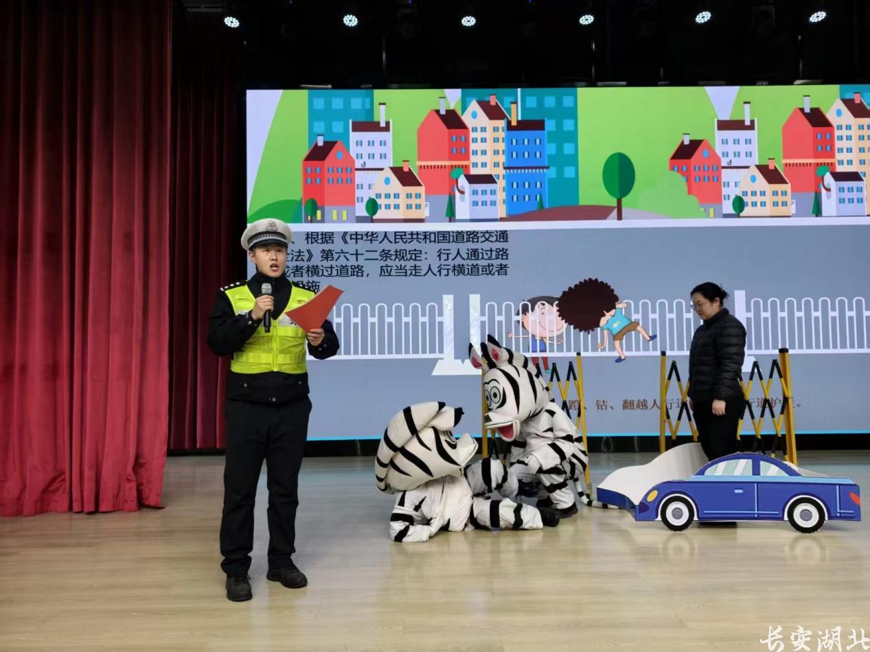 交管大队则以 “文明交通 畅行武汉” 为主题,走进滨江未来实验小学开展特色宣传。活动中,青年民警郭昊携手青山公安原创卡通 IP “警小斑” 演绎情景剧,还原横穿马路、翻越护栏等危险场景;民警左龙、刘敏带领 “警小斑” 展示标准交通手势操,让同学们在沉浸体验中掌握交通知识。恰逢 “警小斑” 推出十周年,民警们还与师生共同庆生,分享交通安全主题蛋糕,让文明交通理念在温馨氛围中传递。据悉,AI版“警小斑”已通过短视频平台、社区大屏发布节日交通安全提醒,未来将进一步开发定制化功能,打造 “线上 + 线下” 智慧宣教矩阵。