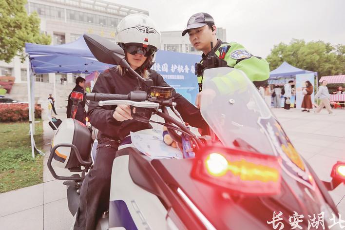 交通安全体验区受到学子热捧。武汉东湖高新区警方供图