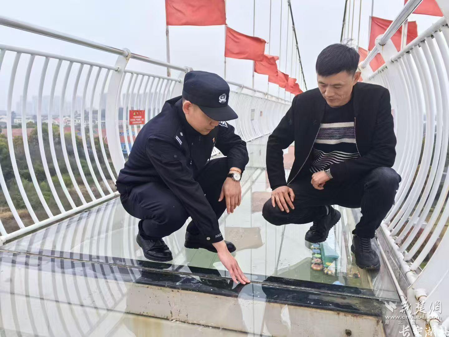 “玻璃天桥的复检报告再给我核对一遍,拉锚的拉力数据、玻璃的承重检测,每一项都不能有疏漏。”3月24日,蔡甸区分局大集街派出所社区警务队队长李斌组织花博汇景区游乐项目负责人,对网红玻璃天桥开展安全专项检查。