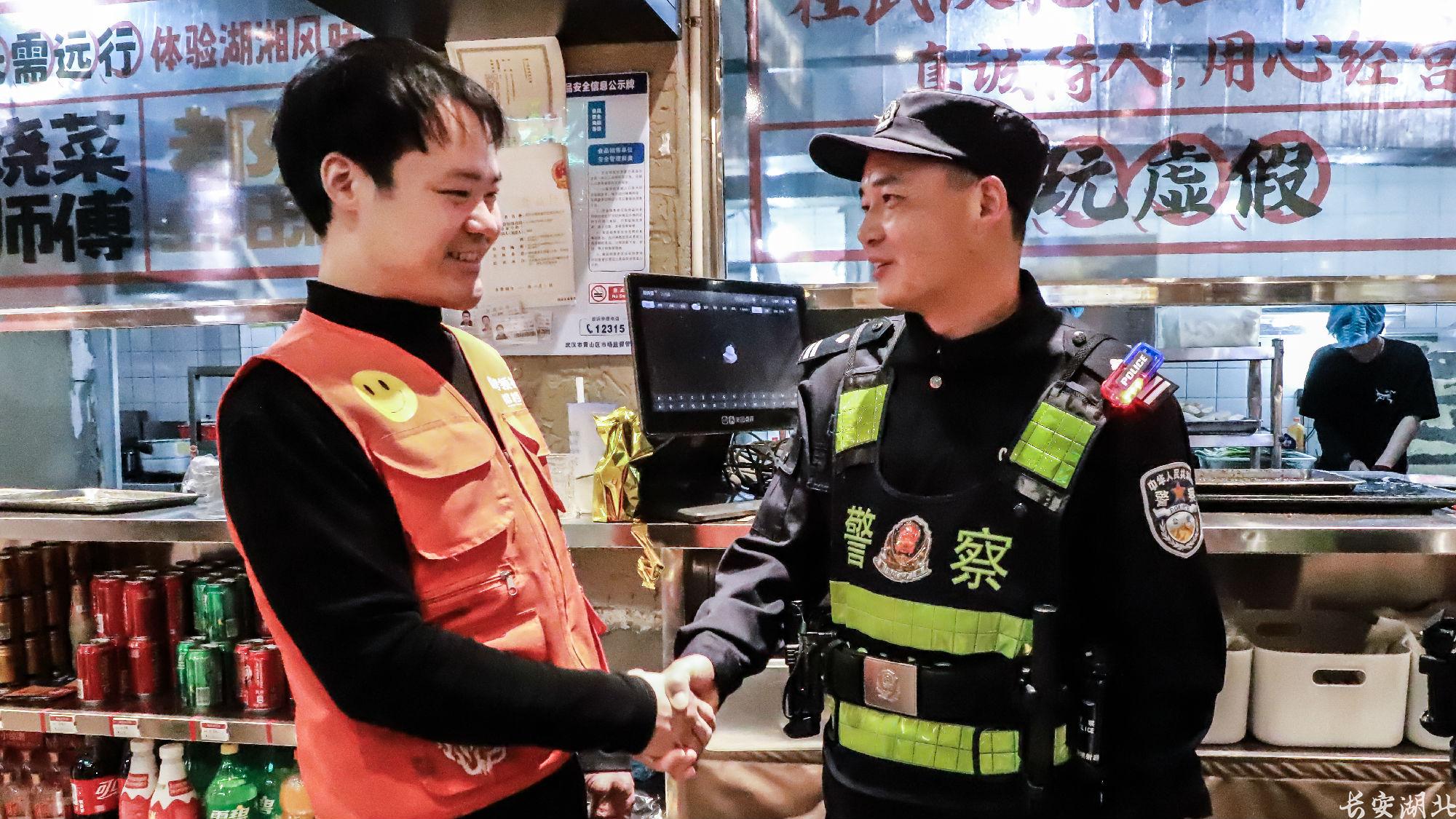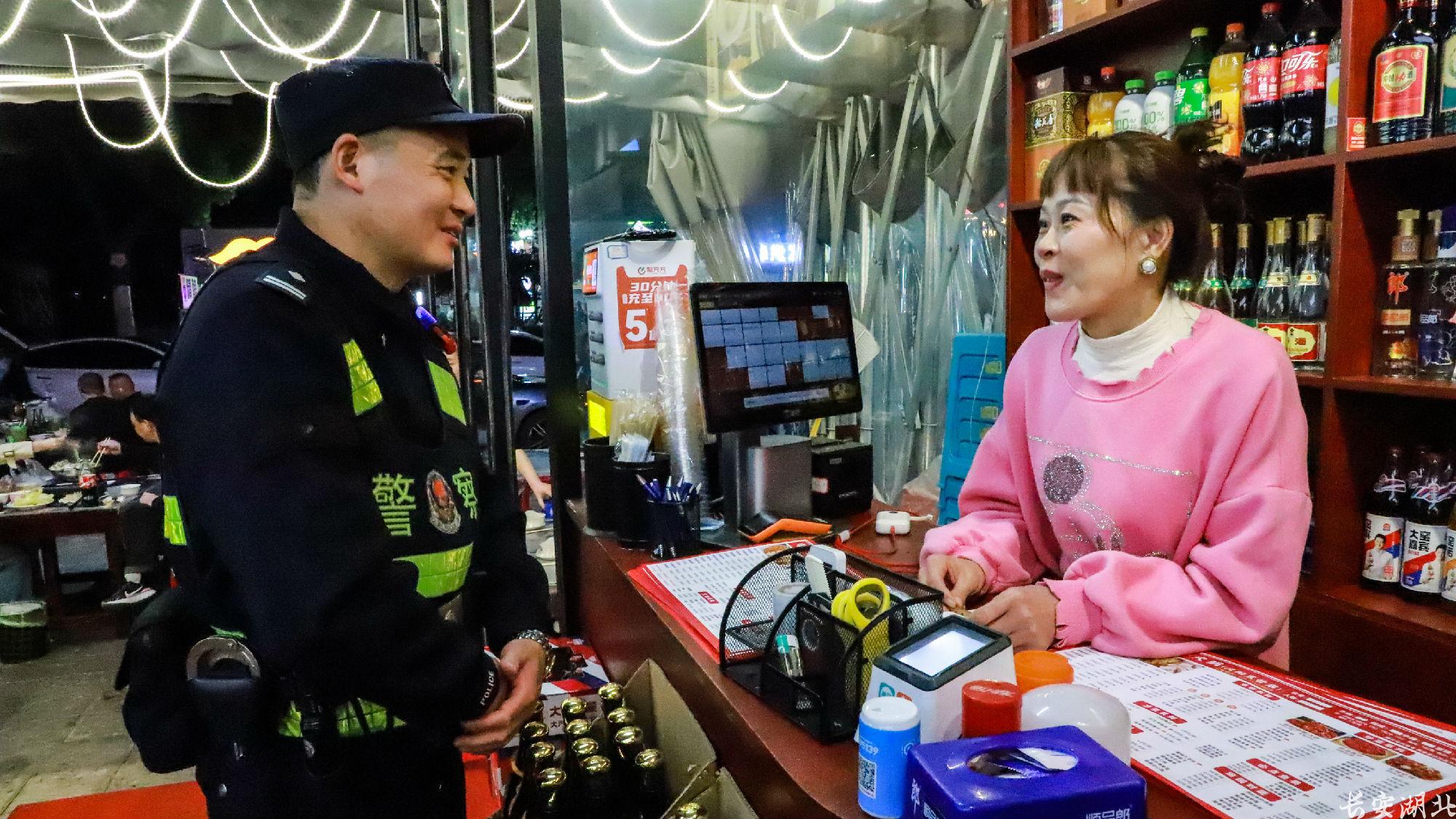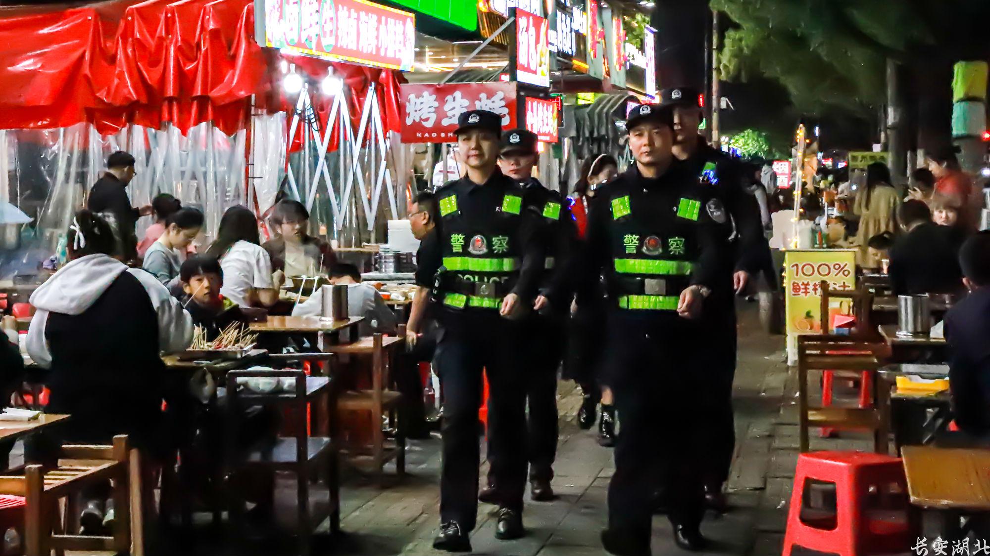 华灯初上,武汉市青山区恩施街烟火升腾,餐馆里人声鼎沸,食客穿梭其间。在这条人气十足的夜市街上,恩施街步巡队民警李新伟的身影,总是格外醒目。